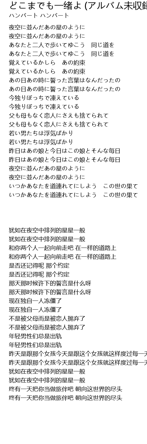 | [00:47.25] | あなたと二人で歩いてゆこう 同じ道を |