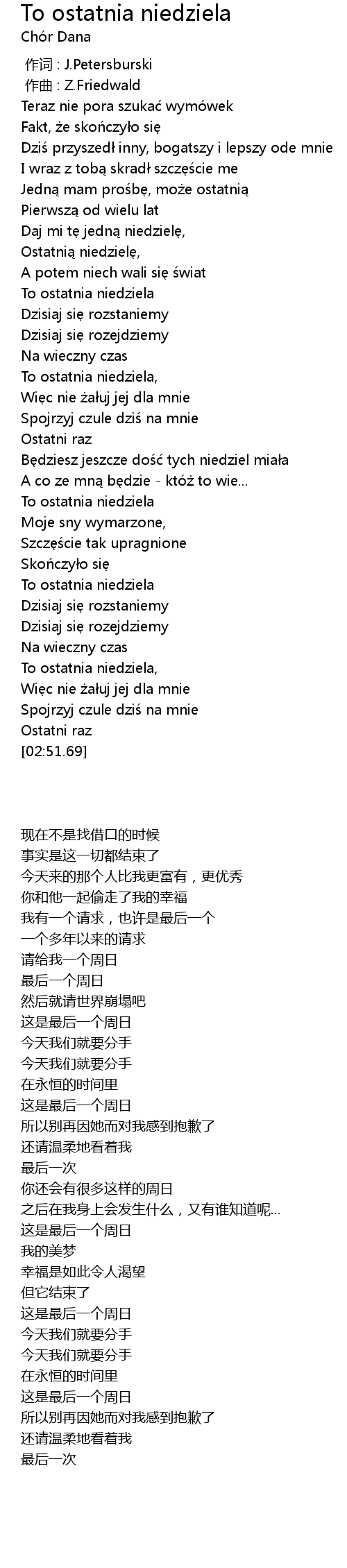| [01:35.56] | B dziesz jeszcze do tych niedziel mia a |