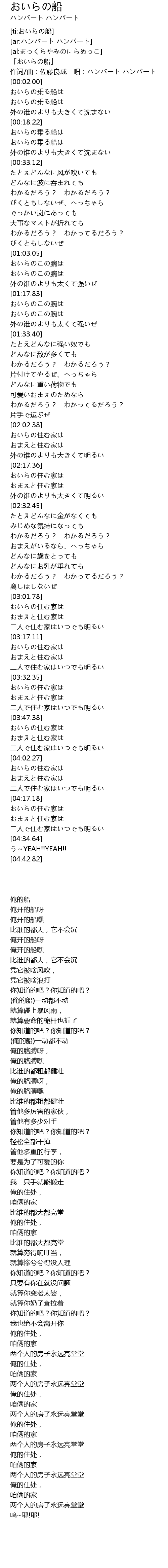 | [ti:おいらの船] | |