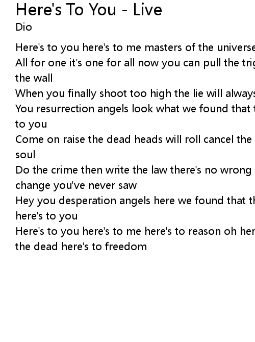 Here's to you here's to me here's to reason oh here's to me here's to you raise the dead here's to freedom |