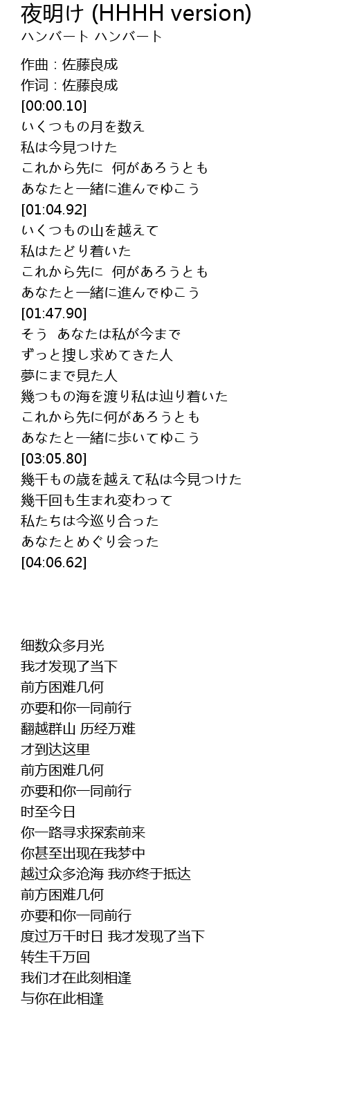 | Song | 夜明け (HHHH version) |