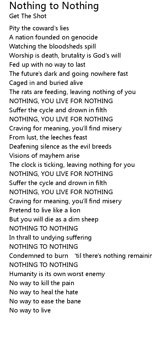 | [00:42.85] | NOTHING, YOU LIVE FOR NOTHING |