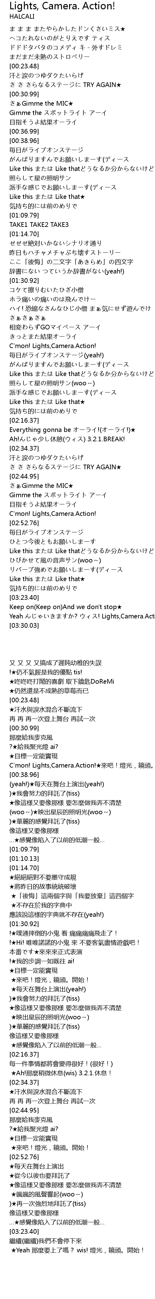 | [03:26.28] | Yeah ? ! Lights, Camera. Action! |