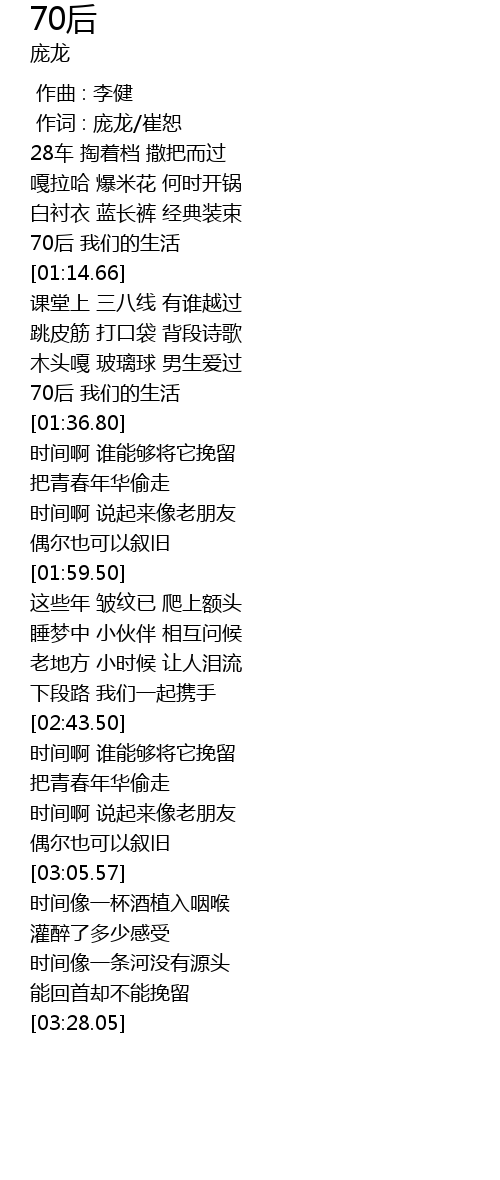 | [01:32.65] | 70后 我们的生活 |