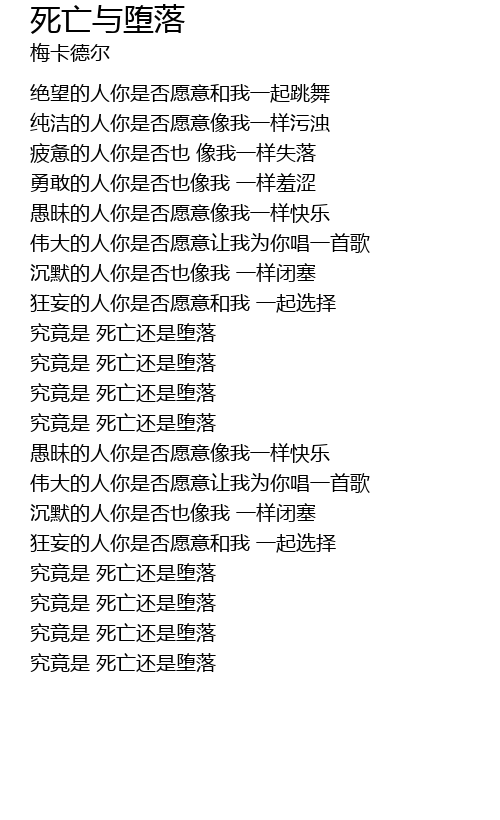 | [03:15.96] | 究竟是 死亡还是堕落 |