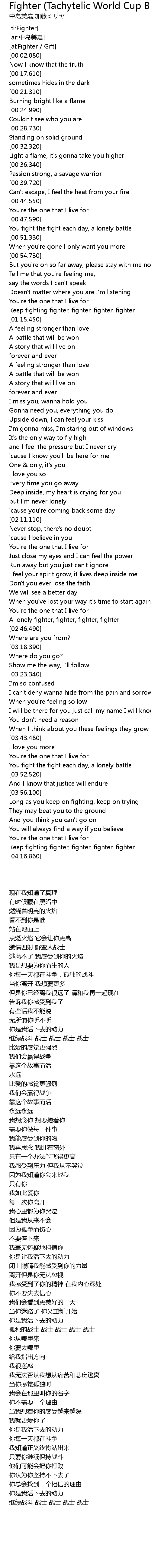 | [01:10.320] | Keep fighting fighter, fighter, fighter, fighter |