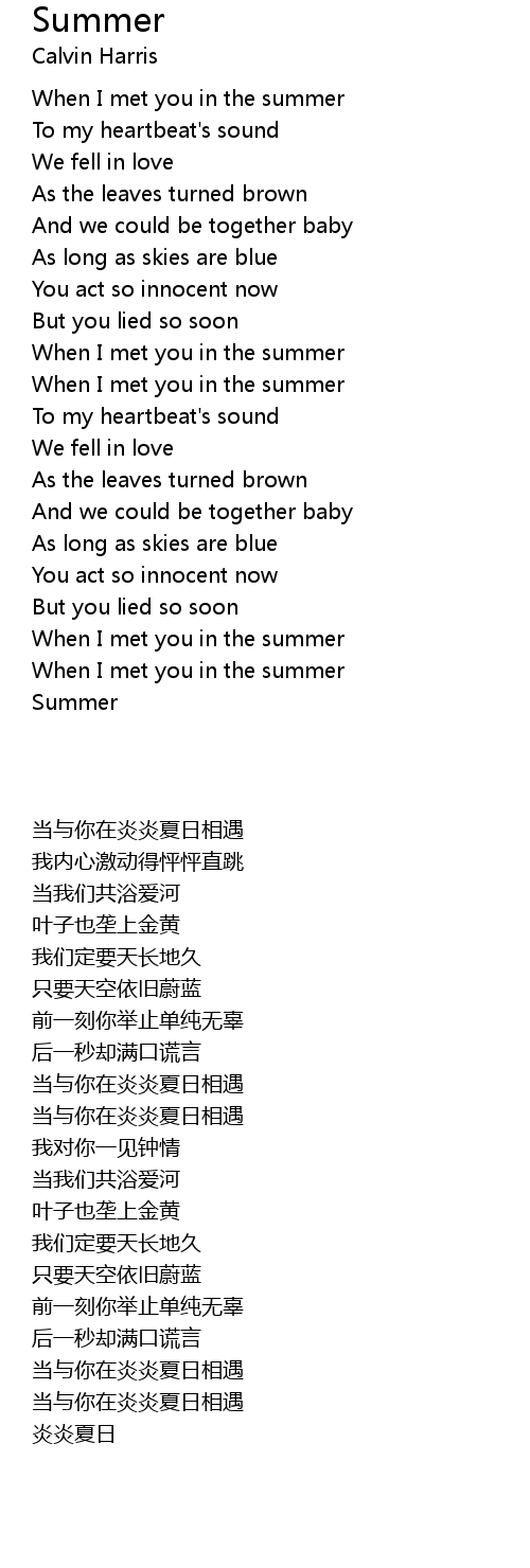 When I met you in the summer |