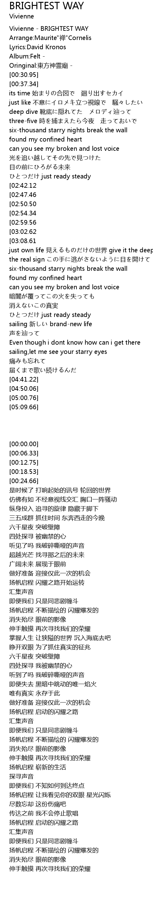 | [00:00.00] | Vivienne - BRIGHTEST WAY |