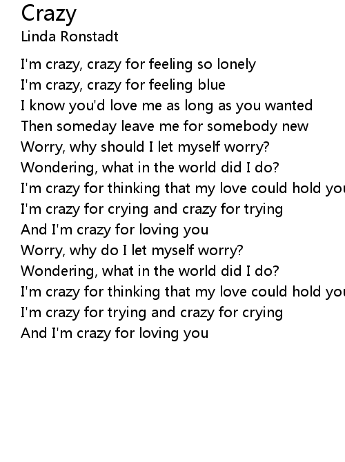 I'm crazy, crazy for feeling blue |