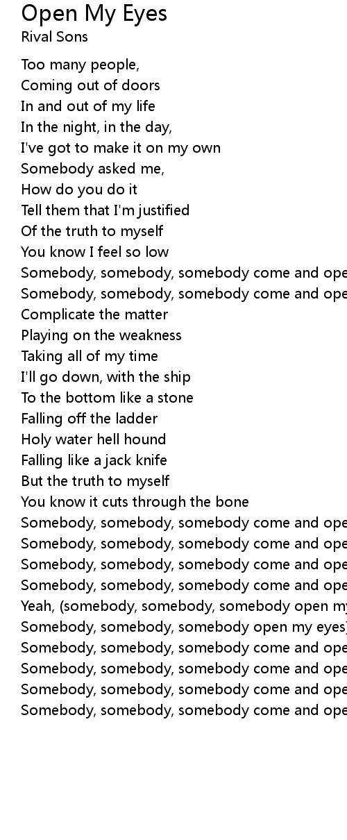 Somebody, somebody, somebody open my eyes) |