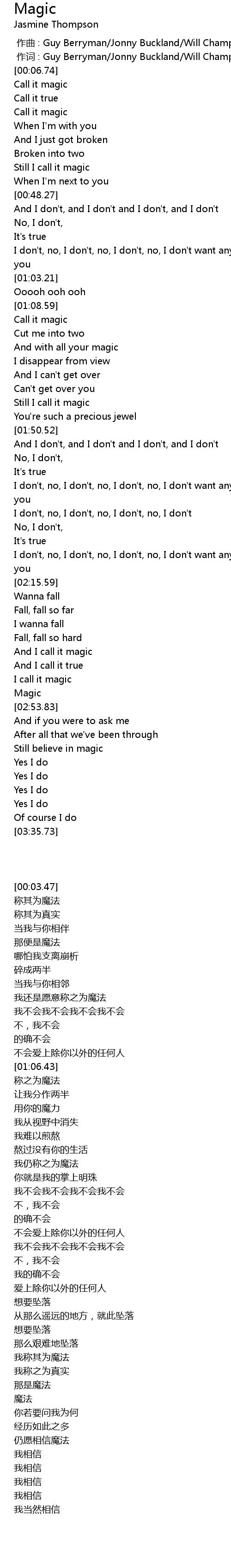 | [03:06.27] | Still believe in magic |