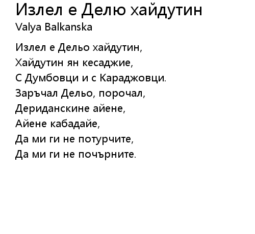 | Song | Излел е Делю хайдутин |