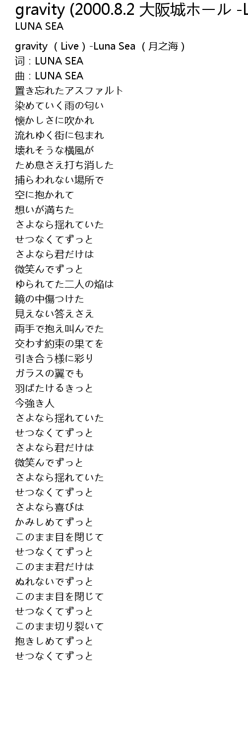 | [00:00.510] | gravity Live Luna Sea yue zhi hai |