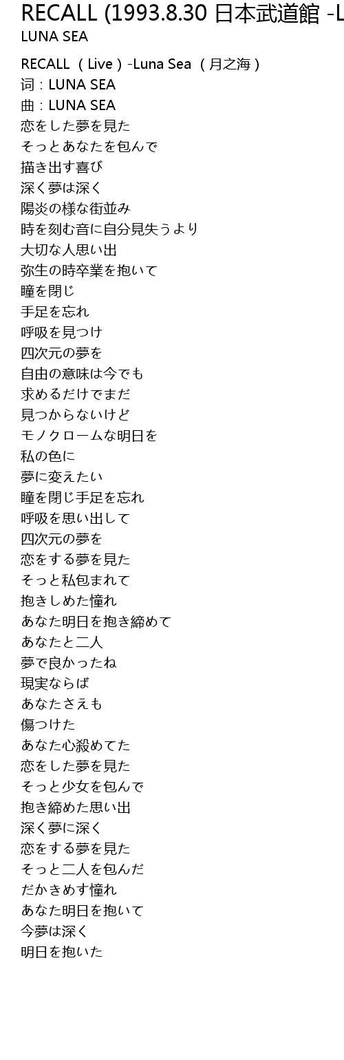 | [00:00.481] | RECALL (Live)-Luna Sea (月之海) |