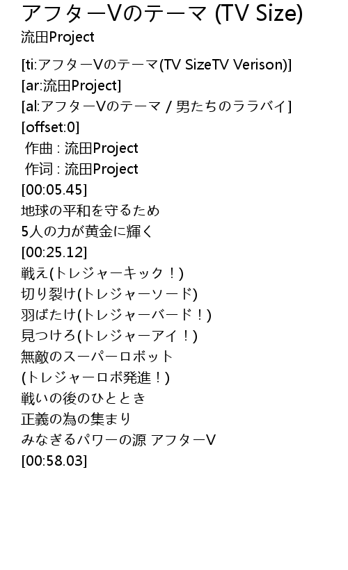 | [ti:アフターVのテーマ(TV SizeTV Verison)] | |