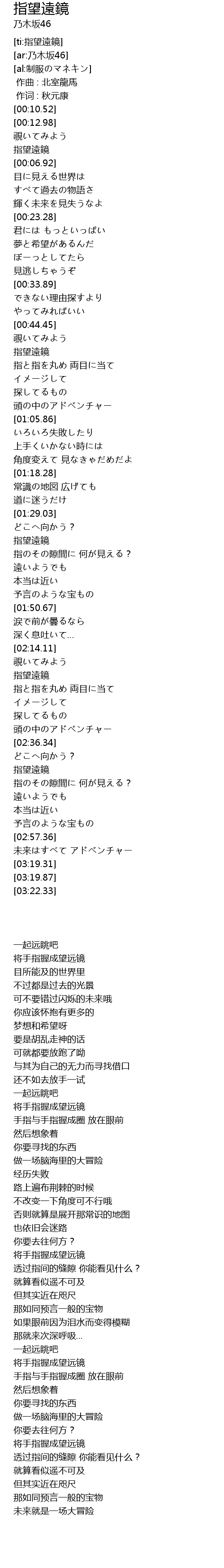| [02:41.78] | 指のその隙間に 何が見える? |