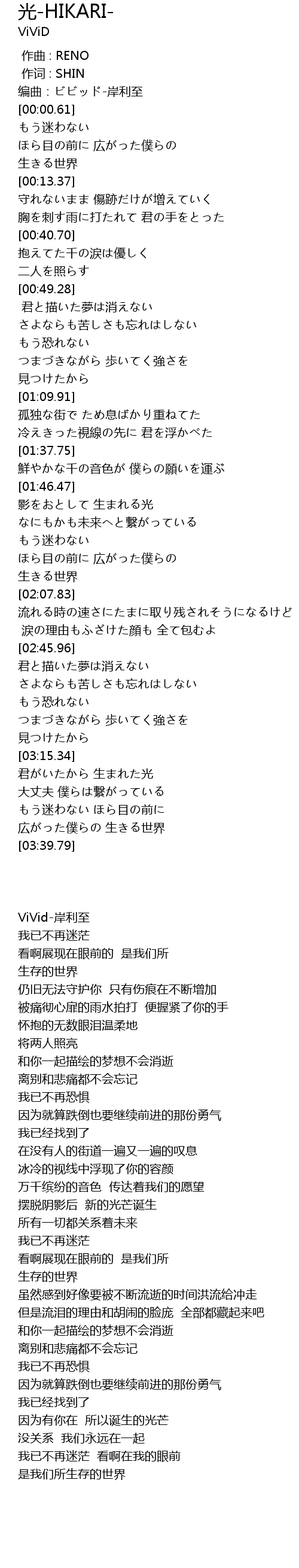 | [00:00.41] | 编曲:ビビッド-岸利至 |