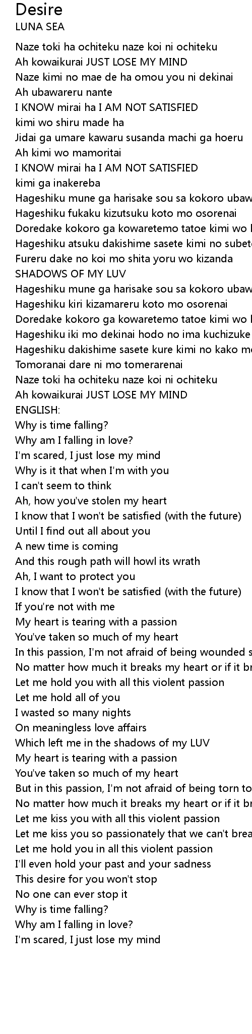 Hageshiku mune ga harisake sou sa kokoro ubaware sugite yuku |