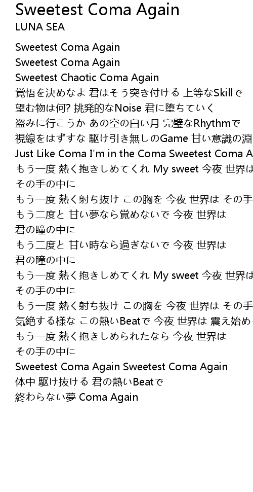 | Just Like Coma I'm in the Coma Sweetest Coma Again | |
