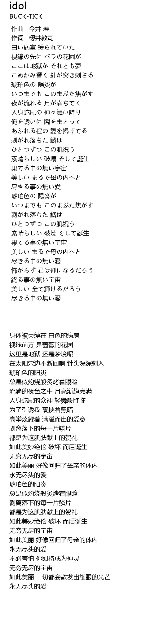 | [00:01.00] | 作词 : 櫻井敦司 |