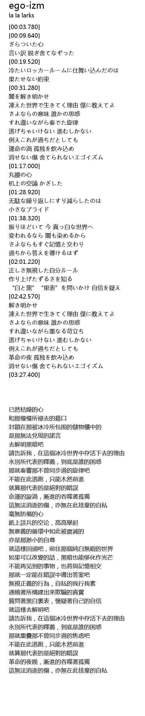| [03:18.920] | 消せない傷 舍てられないエゴイズム |