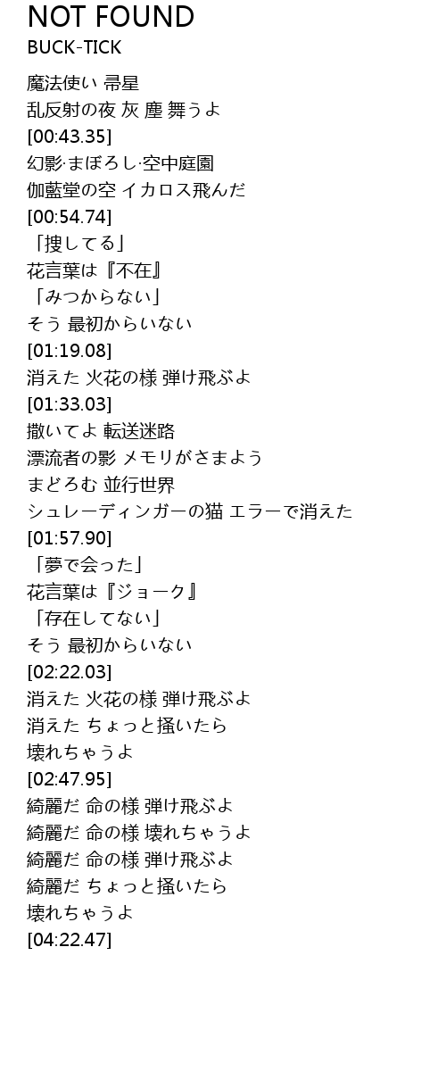 | [01:10.22] | 「みつからない」 |