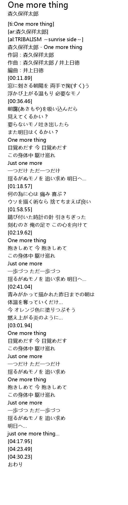 | [00:00.31] | 森久保祥太郎 - One more thing |