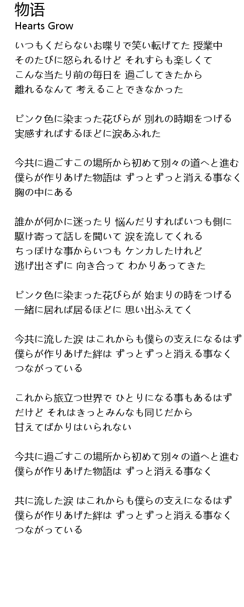 | 僕らが作りあげた物語は ずっと消える事なく | |
