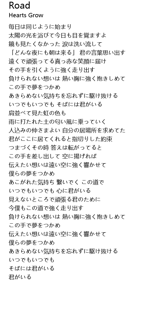 | 見えないところで頑張る君のために 今僕もこの道で強く走り出す | |