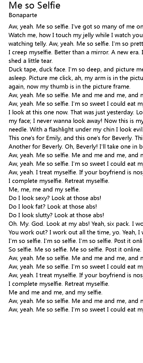 | I'm so selfie. I'm so selfie. I'm so selfie. Post it online. | |