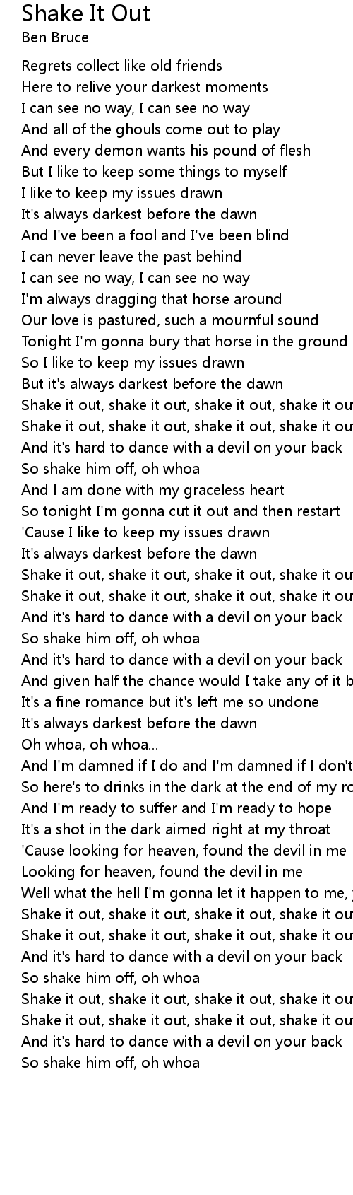 Shake it out, shake it out, shake it out, shake it out, ooh whoa |
