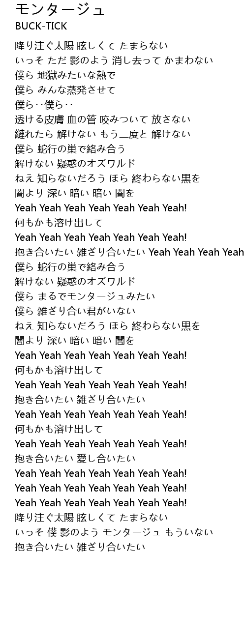 | 抱き合いたい 雑ざり合いたい Yeah Yeah Yeah Yeah Yeah Yeah Yeah | |