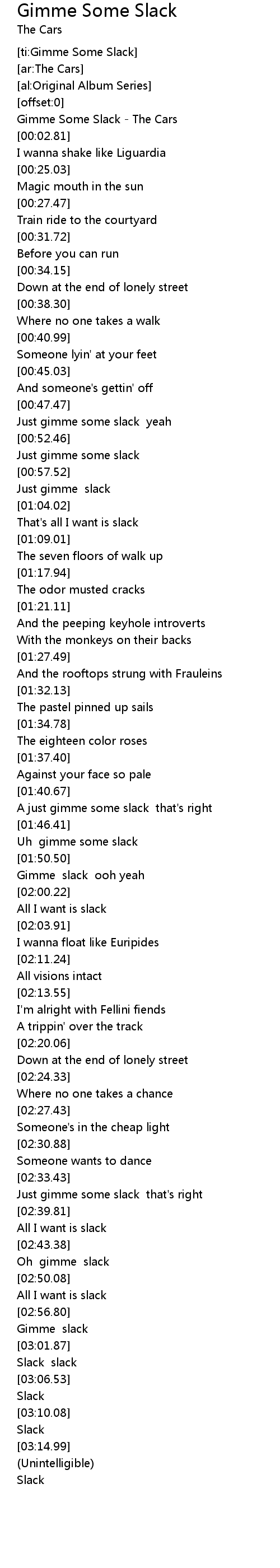 Gimme Some Slack - The Cars |