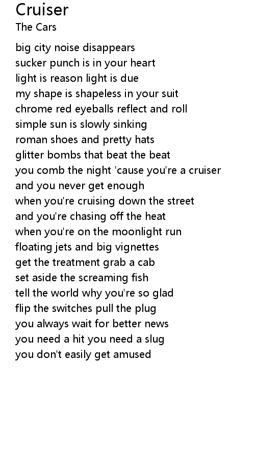 you comb the night 'cause you're a cruiser |