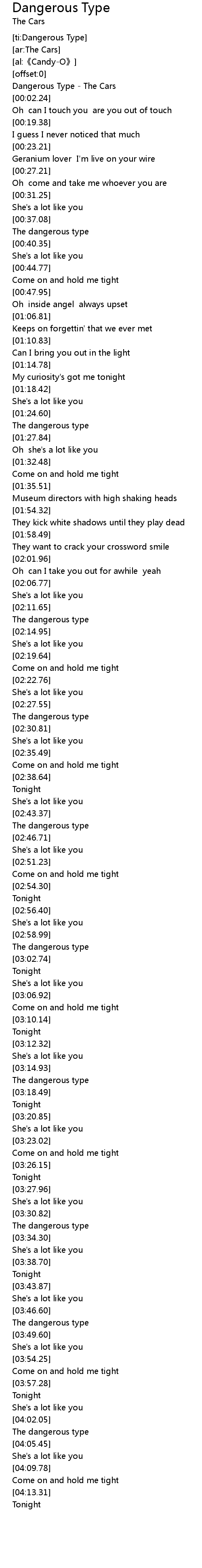| [00:00.60] | Dangerous Type The Cars |