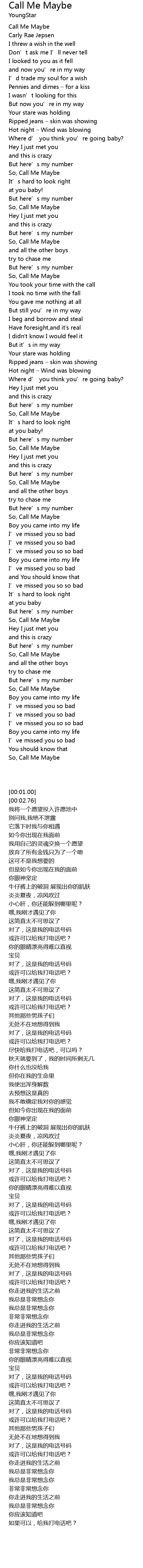 | [00:01.00] | Call Me Maybe |