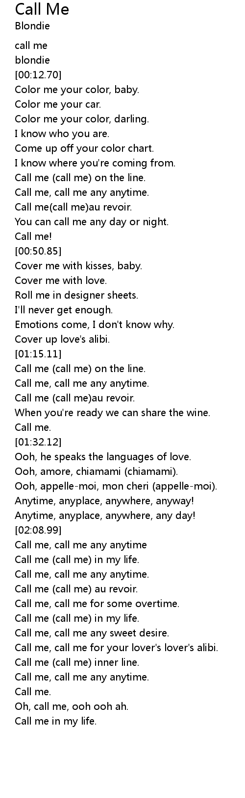 Call me, call me any anytime |