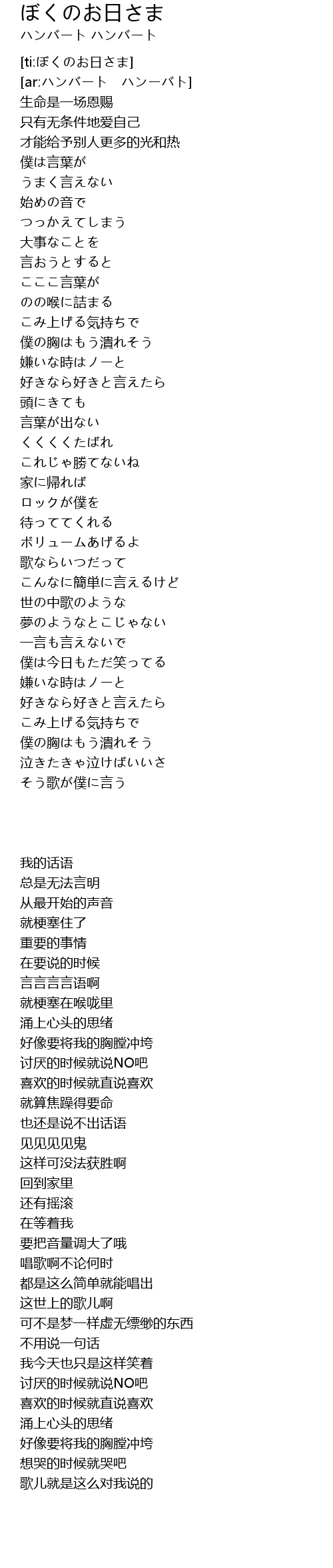 | [ti:ぼくのお日さま] | |