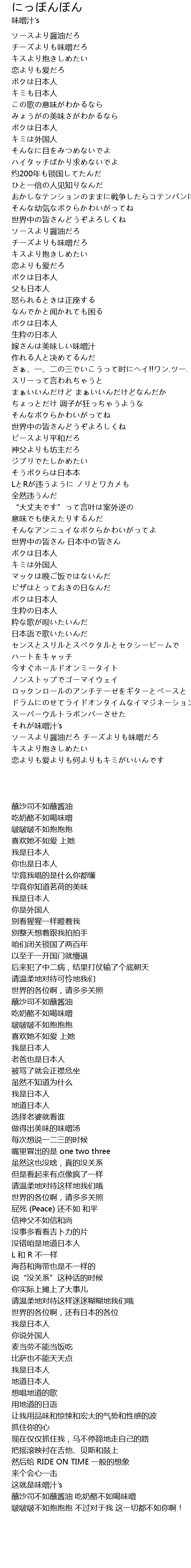 | [03:45.90] | ソースより醤油だろ チーズよりも味噌だろ |