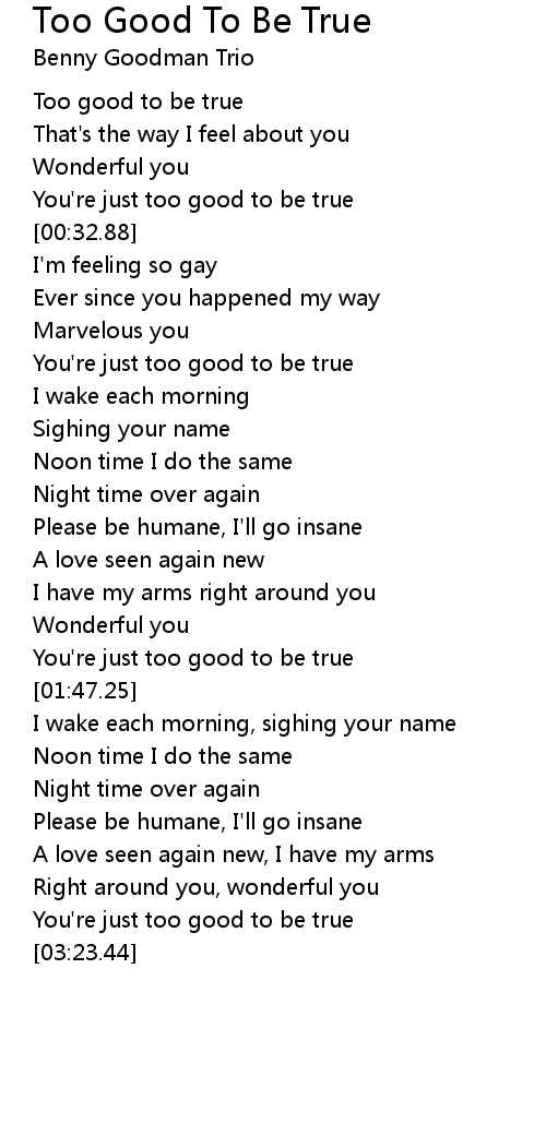 Too Good To Be True Lyrics