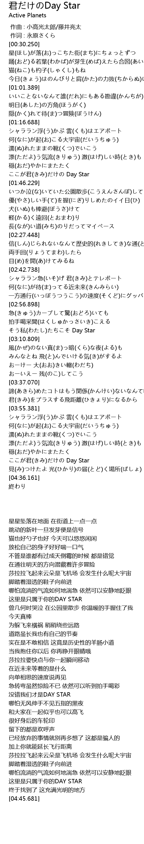| [04:18.371] | ここが君(きみ)だけの Day Star |