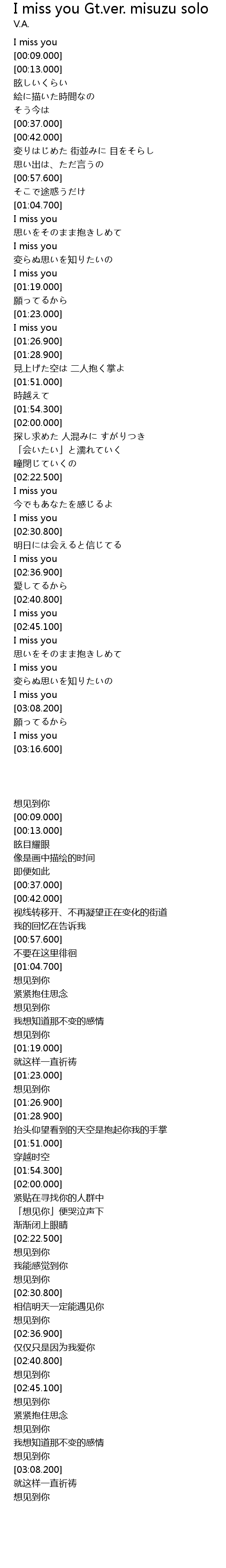 | Song | I miss you Gt.ver. misuzu solo |
