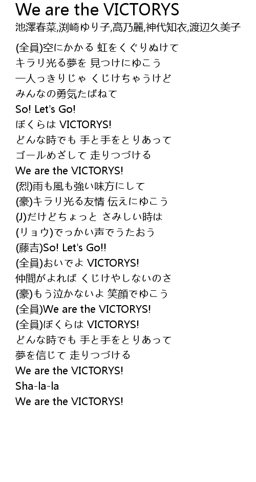 | [02:00.5] | (全員)We are the VICTORYS! |