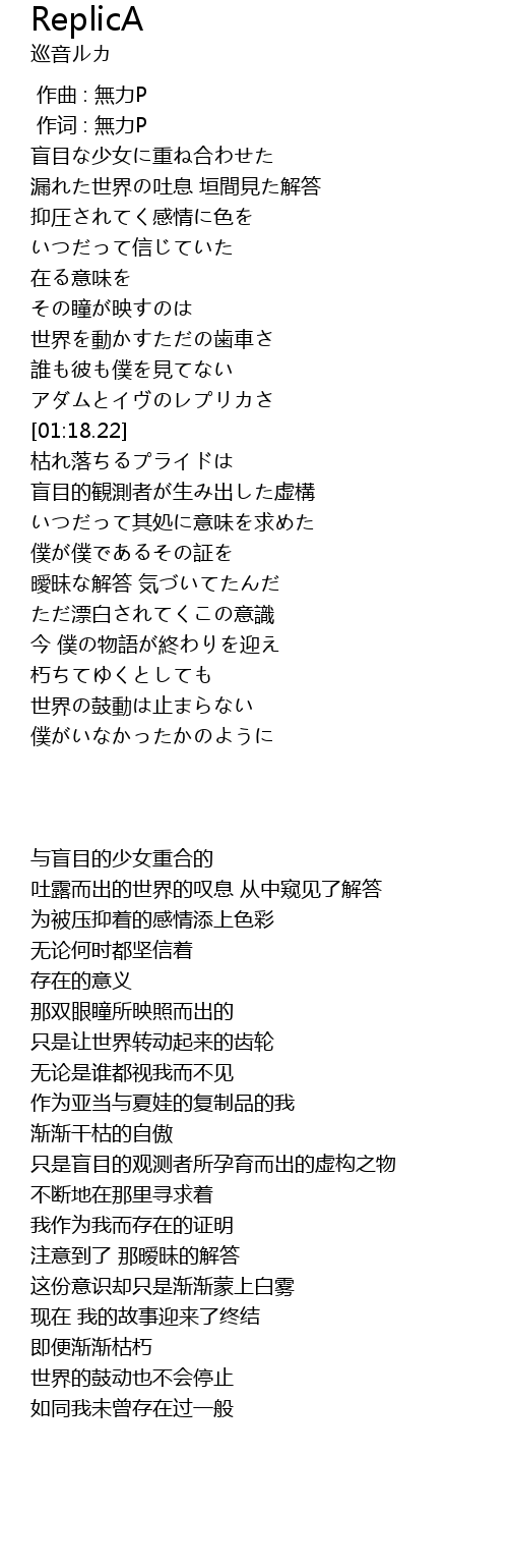 | [01:10.73] | アダムとイヴのレプリカさ |