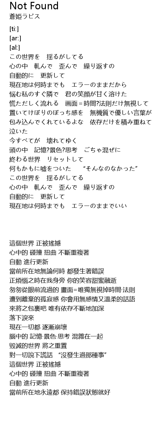 | [00:39.46] | 現在地は何時までも エラーのままだから |