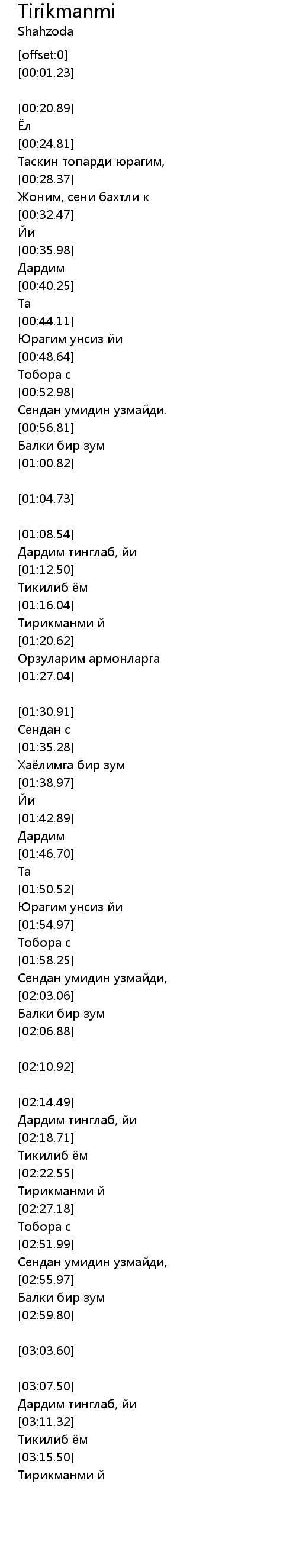 [03:08.23] Дардим тинглаб, йилаб тинмай.