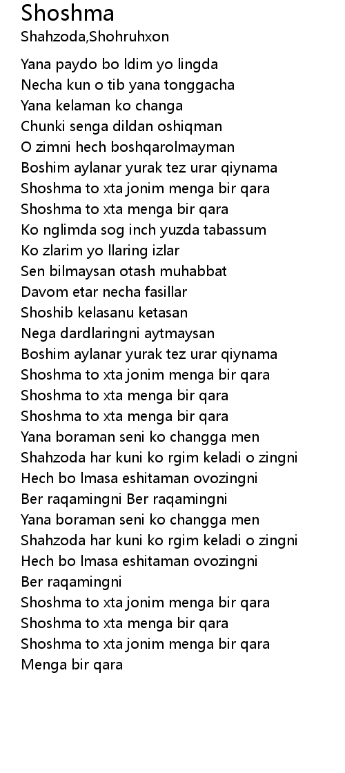 Shoshma to xta menga bir qara |
