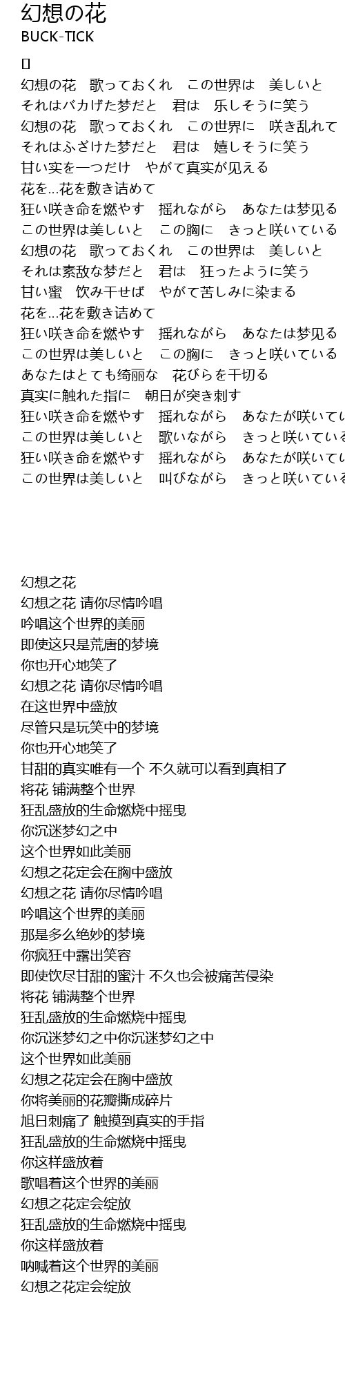 | 幻想の花 歌っておくれ この世界に 咲き乱れて | |