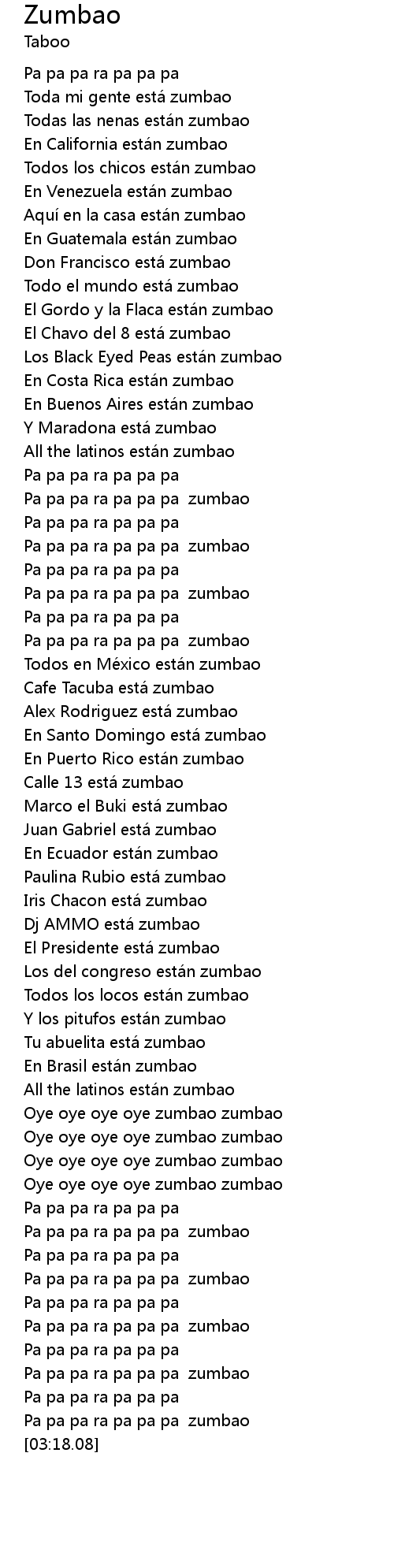 | [02:33.50] | Oye oye oye oye zumbao zumbao |