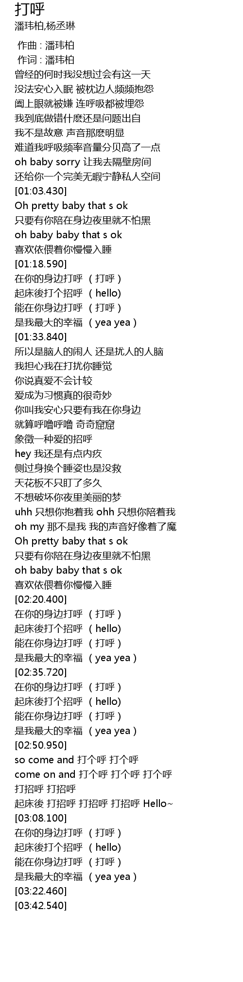 | [03:02.710] | 起床後 打招呼 打招呼 打招呼 Hello~ |